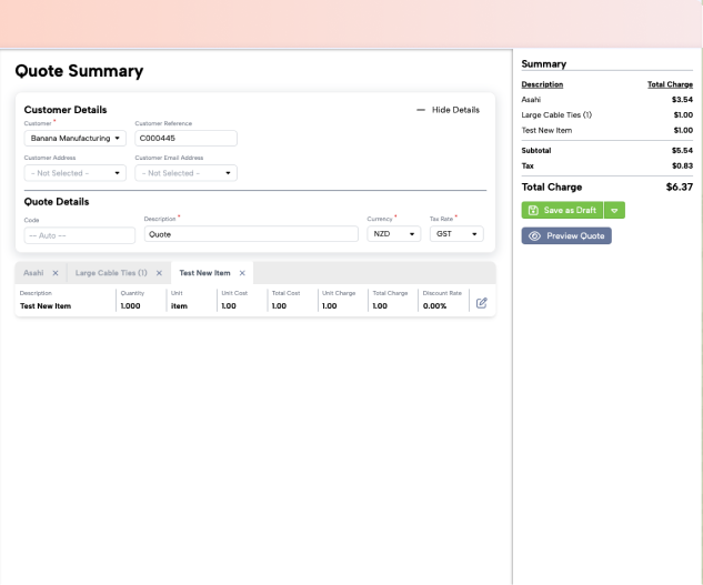 Use templates or create custom quotes with variables (size, material, labour, assemblies, options).